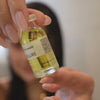 Coloque a ampola na palma da mão, esfregue uma mão na outra e sinta a textura se transformar em uma máscara cremosa. O calor das mãos ativa os ativos, deixando-a pronta para aplicar nos fios.